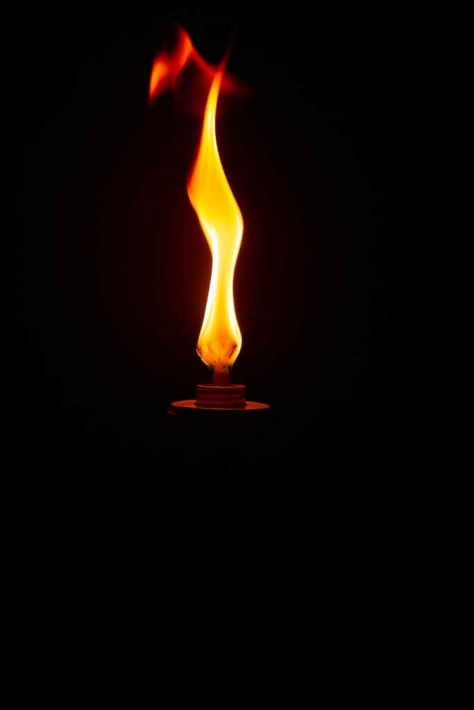 lit by the flame